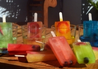 Γρανίτα σε ξυλάκι φτιαγμένη με φρέσκα φρούτα και βουτηγμένη στη σαμπάνια.