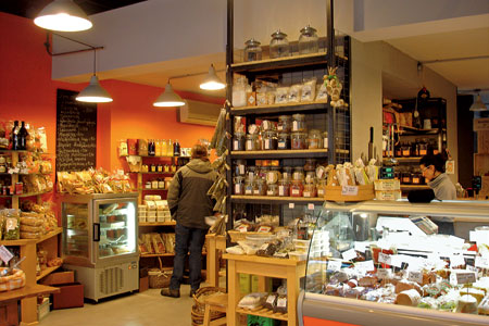Επίσης, στο χώρο τοποθετήθηκαν και µερικά τραπέζια, όπου οι πελάτες µπορούν να απολαύσουν ένα φρεσκοκοµµένο αλλαντικό, κάποιο αλίπαστο ή καπνιστό θαλασσινό, ένα ωραίο τυρί ή ό,τι άλλο λαχταρίσουν από τα του ψυγείου. Εντυπωσιακή προσθήκη οι περίπου 30 ελληνικοί οίνοι, που σερβίρονται σε ποτήρι των 75 ή των 150 ml, σε πολύ καλές τιµές.