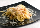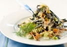 Το μαγείρεψα με κανονικές ταλιατέλες -γιατί δεν βρήκα μαύρες - και ήταν πολύ νόστιμο. θα πρέπει να προσέξετε στο τέλος να προσθέσετε λίγο από το νερό που έχετε κρατήσει, για να γίνουν πιο ζουμερές, όχι όμως πολύ για να μην χαθούν τα αρώματα από το ποτό που έχετε βάλει.
