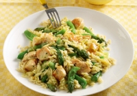 ΔιαδικασίαΣε μια φαρδιά κατσαρόλα ζεσταίνουμε το ελαιόλαδο σε μέτρια φωτιά και σοτάρουμε το κοτόπουλο για...