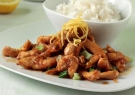 Διαδικασία Κόβουμε τα φιλέτα κοτόπουλου σε μπαστουνάκια πάχους περίπου 1 εκ. Σε ένα μεγάλο γουόκ (ή σε ένα...