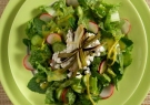 Διαδικασία Σε μια μεγάλη λεκάνη ανακατεύουμε με το σύρμα το λάδι, με το λεμόνι, τη μουστάρδα, το ροζ πιπέρι...