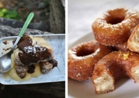 Αριστερά, το περίφημο μπουγατσάν, ένα κρουασάν γεμισμένο με κρέμα μπουγάτσα και πασπαλισμένο με ζάχαρη άχνη και κανέλα. Δεξιά, το cronut, κάτι ανάμεσα σε κρουασάν και ντόνατ, με αφράτη βουτυράτη ζύμη γεμισμένη με κρέμα και γλάσο στην κορυφή.