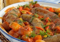 Το λουκάνικο κάνει τη διαφορά καθώς ανανεώνει και εμπλουτίζει τη γεύση των φασολιών.