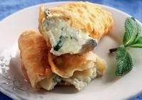 Ντελικάτα τυροπιτάκια με μαλακό, εύθρυπτο φύλλο (λόγω ρακής) και ισορροπημένη γέμιση (φέτα, ανθότυρο, δυόσμος και πιπέρι).