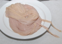 Το προηγούμενο βράδυ βάζουμε τα έντερα σε μια λεκάνη με νερό που να τα καλύπτει, στύβουμε και ένα λεμόνι (για να ασπρίσουν) και τα βάζουμε στο ψυγείο. Την επομένη τα βγάζουμε από τη λεκάνη, πιάνουμε τη μία άκρη από το έντερο και με τα δάχτυλα...