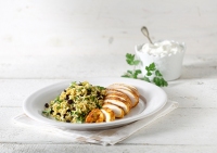 Υλικά (για 2 άτομα): περίπου 1 μερίδα πρασόρυζο (με τα υγρά του), 1 κεσές γιαούρτι στραγγιστό, 1 κουτ. γλυκού δυόσμος ξερός, κοπανισμένος, 100 ml νερό, 1 κουτ. σούπας φουντούκια ή αμύγδαλα ή κουκουνάρια, καβουρντισμένα σε αντικολλητικό τηγάνι χωρίς...