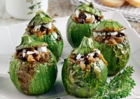 Γεμιστά κολοκυθάκια με μελωμένη γέμιση σκέτη απόλαυση χάρη στα καραμελωμένα κρεμμύδια και τη γλυκιά σταφίδα.