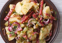 Μια γευστική σαλάτα που θα μπορούσε κάλλιστα να είναι και γεύμα αφού οι πατάτες το κάνουν ιδιαιτέρως χορταστικό.