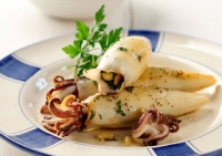 Ετοιμάζουμε μια διαφορετική γέμιση για τα καλαμαράκια με μαντζουράνα, μαϊντανό, κρεμμύδι, κουκουνάρια.