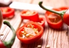 Αφαιρώντας τα σπόρια από το εσωτερικό φρέσκων και ξερών, μικρών και μεγάλων, καυτερών πιπεριών μειώνουμε την καυστικότητά τους.