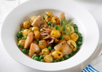 Το μυστικό της συνταγής είναι η χρήση των λουβιών των κουκιών, που θα δώσουν στο φαγητό την ανοιξιάτικη, γλυκιά γεύση του λαχανικού.
