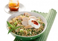 • Κουσκούς με το υπόλοιπο κοτόπουλο και δυόσμο