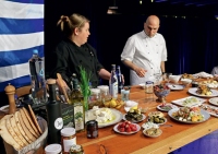 Ο διάσημος σεφ Μάικλ Ψιλάκης ετοιμάζει ελληνικά φαγητά για τους επίσημους προσκεκλημένους.