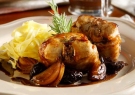 Συνοδεύουμε με ζυμαρικά ή πουρέ πατάτας ή πατάτες που ψήνουμε τυλιγμένες με αλουμινόχαρτο όση ώρα ψήνεται το κουνέλι.