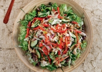 Μπορούμε είτε να βράσουμε κοτόπουλο, όπως προτείνουμε στη συνταγή, είτε να αξιοποιήσουμε το ψητό ή βραστό κοτόπουλο που μας έμεινε από την προηγούμενη μέρα.
