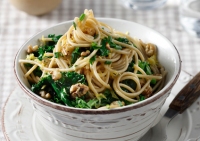 Το μυστικό της συνταγής κρύβεται στα συστατικά της μακαρονάδας, δηλαδή στο αλμυροπικάντικο τυρί και το χόρτινο κέιλ.