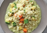 Ριζότο με το λαχανικό του μήνα, που δεν είναι άλλο από το καταπράσινο κολοκυθάκι.