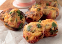 Υλικά (για περίπου 10 τεμάχια): περίπου 2 φλιτζ. τσαγιού υπόλοιπο μπριάμ, 1 αυγό, 1/2 - 1 φλιτζ. τσαγιού φρυγανιά, τριμμένη, 1 μεσαίου μεγέθους πατάτα, καθαρισμένη, 2 κουτ. σούπας αλεύρι αλάτι, φρεσκοτριμμένο πιπέρι, 1 φλιτζ. τσαγιού κασέρι ή άλλο κίτρινο...