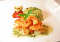 Κόκορας κρασάτος με φάβα και σάλτσα με ροδοπέταλα (!), φασολάκια με μανιτάρια σοτέ, χειροποίητος γύρος. Αληθινά δημιουργική ελληνική κουζίνα στη Φράτσια.