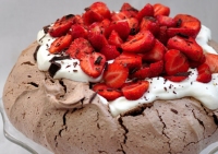 Σοκολατένια πάβλοβα με παγωτό φράουλα
