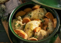 Μπλουμ αλλά όχι νερόβραστο, το κοτόπουλο μας μαγειρεύεται χρησιμοποιώντας μόνο ένα σκεύος. Περισσότερες συνταγές μπλουμ, στον Γαστρονόμο που κυκλοφορεί αυτή την Κυριακή με την Καθημερινή.