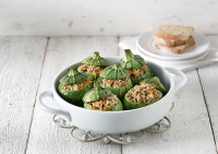 Ο σεφ προσέχει τη λεπτομέρεια και χρησιμοποιεί το διασημότερο ίσως ελληνικό προϊόν παγκοσμίως στη συνταγή του για να συνοδέψει τους κολοκυθοανθούς.