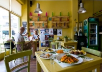 Κόκορας κρασάτος με φάβα και σάλτσα με ροδοπέταλα (!), φασολάκια με μανιτάρια σοτέ, χειροποίητος γύρος. Αληθινά δημιουργική ελληνική κουζίνα στη Φράτσια.