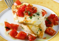 Δροσερό πιάτο με φρέσκες μυρωδάτες ντομάτες και μαλακό φιλέτο γαλοπούλας.
