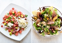 Με λαχανικά του θέρους, ζουμερά φρούτα και πρωτεΐνες ετοιμάζουμε εύκολα, γρήγορα και ελαφριά σαλατογεύματα, ιδανικά για τις ζεστές μέρες του Αυγούστου.