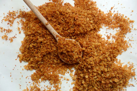 Πού θα τα χρησιμοποιήσεις; Στις σαλάτες σου, στο ψητό φιλέτο κοτόπουλου, στο κοκκινιστό, σε πιλάφια και ριζότι, σε σούπες, σε χόρτα τσιγαριαστά κ.λπ. μόνο που θα τα βάλεις την τελευταία στιγμή, στο σερβίρισμα. Η μαγείρισσα και συγγραφέας Εύη Βουτσινά μού λέει ότι αυτό το κοντιμέντο απαντάται στην παραδοσιακή μας κουζίνα: στη Θεσσαλία το λένε «ψίχα» κι εκεί το πασπαλίζουν πάνω από λαμπριάτικους κρεομεζέδες. Γιατί, λοιπόν, να μη βαφτίσουμε αυτή την παρασκευή «ελληνικά κρουτόν»;