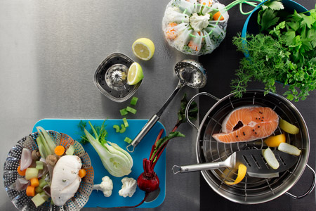 Να μερικά τρικ για να δώσουμε στα φαγητά που φτιάχνουμε στον ατμό περισσότερη νοστιμιά. Αντικαθιστώντας μέρους του νερού με κρασί, μυρωδάτους σπιτικούς ζωμούς, «τσάγια» μυρωδικών, μπίρα, χυμούς λαχανικών ή φρούτων, δίνουμε άλλη διάσταση στο φαγητό. Μπορούμε επίσης να αρωματίσουμε το σκέτο νερό με μπαχάρια και μυρωδικά, για να φτιάξουμε έναν πολύ μυρωδάτο ατμό που θα διαπεράσει τις πρώτες ύλες που μαγειρεύουμε. Με πολλαπλούς συνδυασμούς, ακόμα και κάθε μέρα θα έχουμε διαφορετικό αποτέλεσμα.