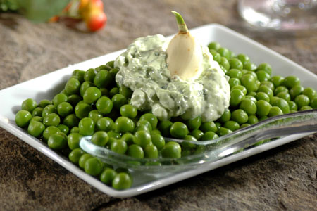 Αρακάς με σκορδάτη σάλτσα γιαουρτιού