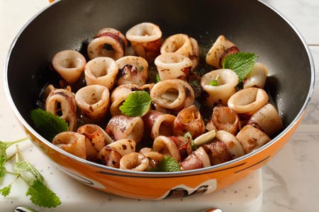 Συμβουλή Τα καλαμαράκια συνήθως τηγανίζονται σε μπόλικο ελαιόλαδο, αλευρωμένα ή καλυμένα με κουρκούτι. Εδώ δίνουμε μια διαφορετική συνταγή με λίγο λάδι και καθόλου αλεύρι. Δεν θα κάνουν κρούστα, αλλά είναι πολύ νόστιμα. Με αυτό το σύντομο σοτάρισμα, αποκτούν μαστιχωτή υφή. Αν τα θέλετε πιο μαλακά, θα πρέπει να τα μαγειρέψετε για αρκετή ώρα μέσα σε υγρά (νερό ή/και κρασί).