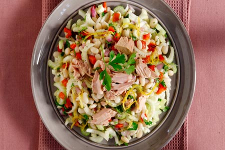 - 2 κονσέρβες τόνου (για πιο νόστιμο αποτέλεσμα αναζητήστε τόνο Αλονήσου σε βαζάκι, σε καλά μπακάλικα), στραγγισμένες