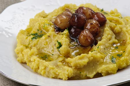 Φάβα ζαφοριαστή με κρεμμυδάκια «στιφάδο»
