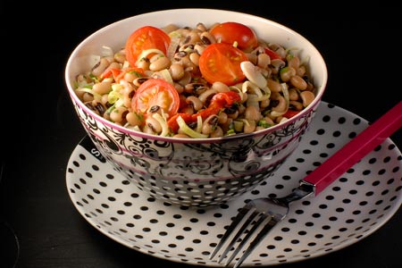 Μαυρομάτικα σαλάτα με πιπεριές και ντοματίνια