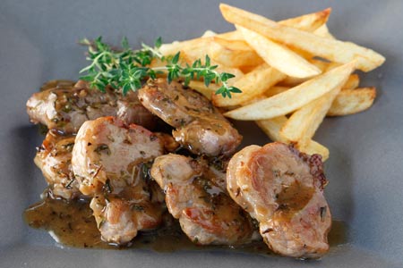 Φιλετίνια από ψαρονέφρι με λιαστές ντομάτες και κρασί