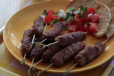 Σερβίρισμα: Λαδώνουμε ελαφρώς τις πίτες και τις ψήνουμε στο γκριλ για περίπου 2 λεπτά από κάθε πλευρά. Μοιράζουμε τις πίτες στα πιάτα. Σε κάθε πίτα μοιράζουμε κομμάτια ντομάτας, κρεμμυδιού και μαϊντανό και πασπαλίζουμε με αλάτι. Βάζουμε από ένα κεμπάπ σε κάθε πίτα και σερβίρουμε. Συνοδεύουμε με γιαούρτι στραγγιστό, σκέτο ή αναμεμειγμένο με λίγο λιωμένο σκόρδο, ελαιόλαδο, ρίγανη και αλατοπίπερο.
