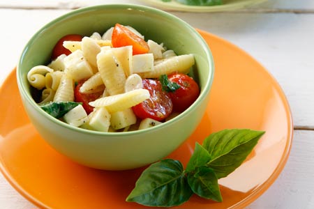 Κοχύλια με ντοματίνια, μοτσαρέλα και βασιλικό