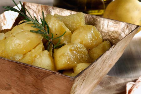 Φτιάχνουμε ένα γρήγορο λάδι δεντρολίβανου, προσθέτουμε μουστάρδα και χυμό λεμονιού και περιχύνουμε με την αρωματική σάλτσα τις πατάτες μας.