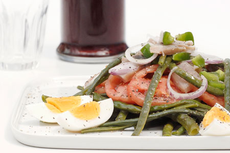 Αμπελοφάσουλα με ρέγκα και σος μουστάρδας
