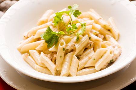 Συμβουλή Για μια πιο γκουρμέ εκδοχή της μακαρονάδας αντικαθιστούμε τον τόνο με λίγα φετάκια αυγοτάραχου.