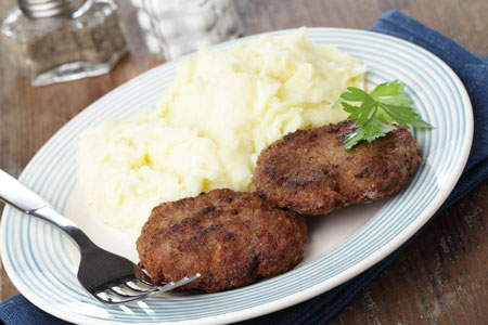 Μπιφτέκια φούρνου με πουρέ πατάτας και κολοκυθιού