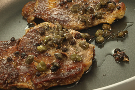 Εσκαλόπ με λεμόνι, κάππαρη και γλυκό κρασί