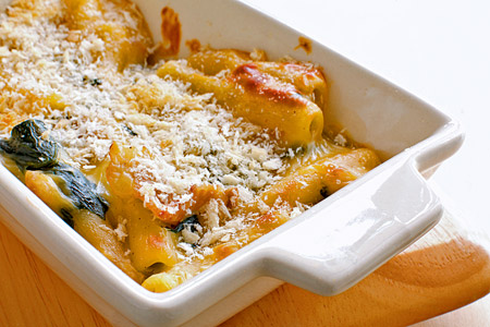 Γκρατιναρισμένα ζυμαρικά με μανιτάρια