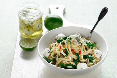 Λιγκουίνι με έτοιμη καθαρισμένη ρόκα και ξύσμα λεμονιού