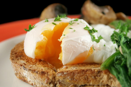 Αυγά με σπανάκι πάνω σε φρυγανισμένο ψωμί