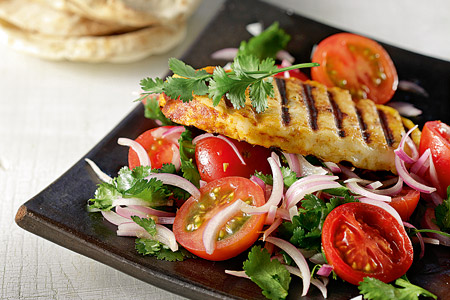 Πικάντικη ζεστή σαλάτα με χαλούμι