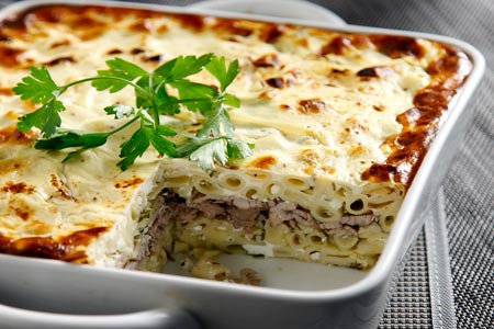 Παστίτσιο με ψαρονέφρι και κρέμα γιαουρτιού